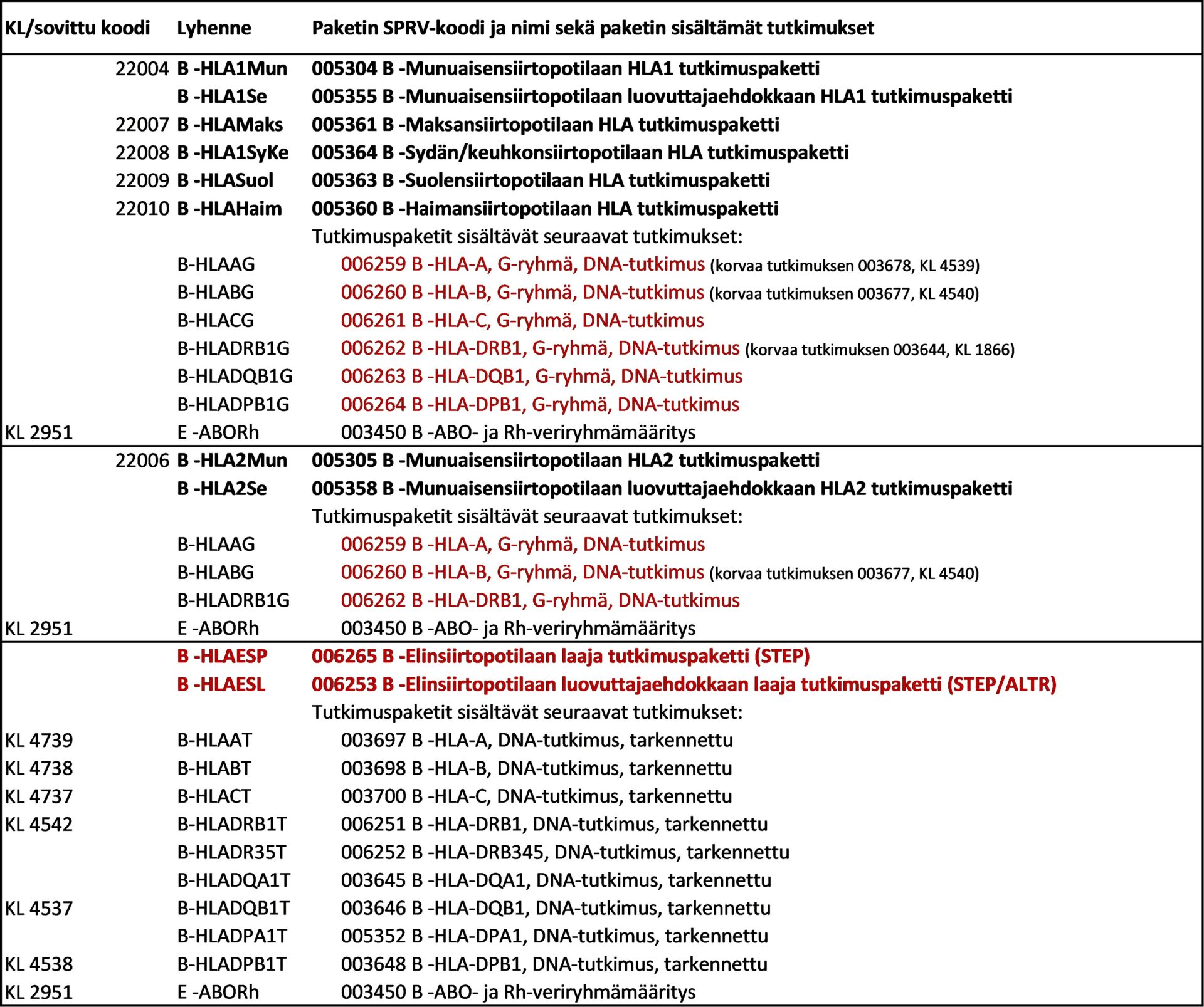 Ändringar i HLA-undersökningsmetoderna och undersökningspaketen för undersökningar relaterade till organtransplantationer