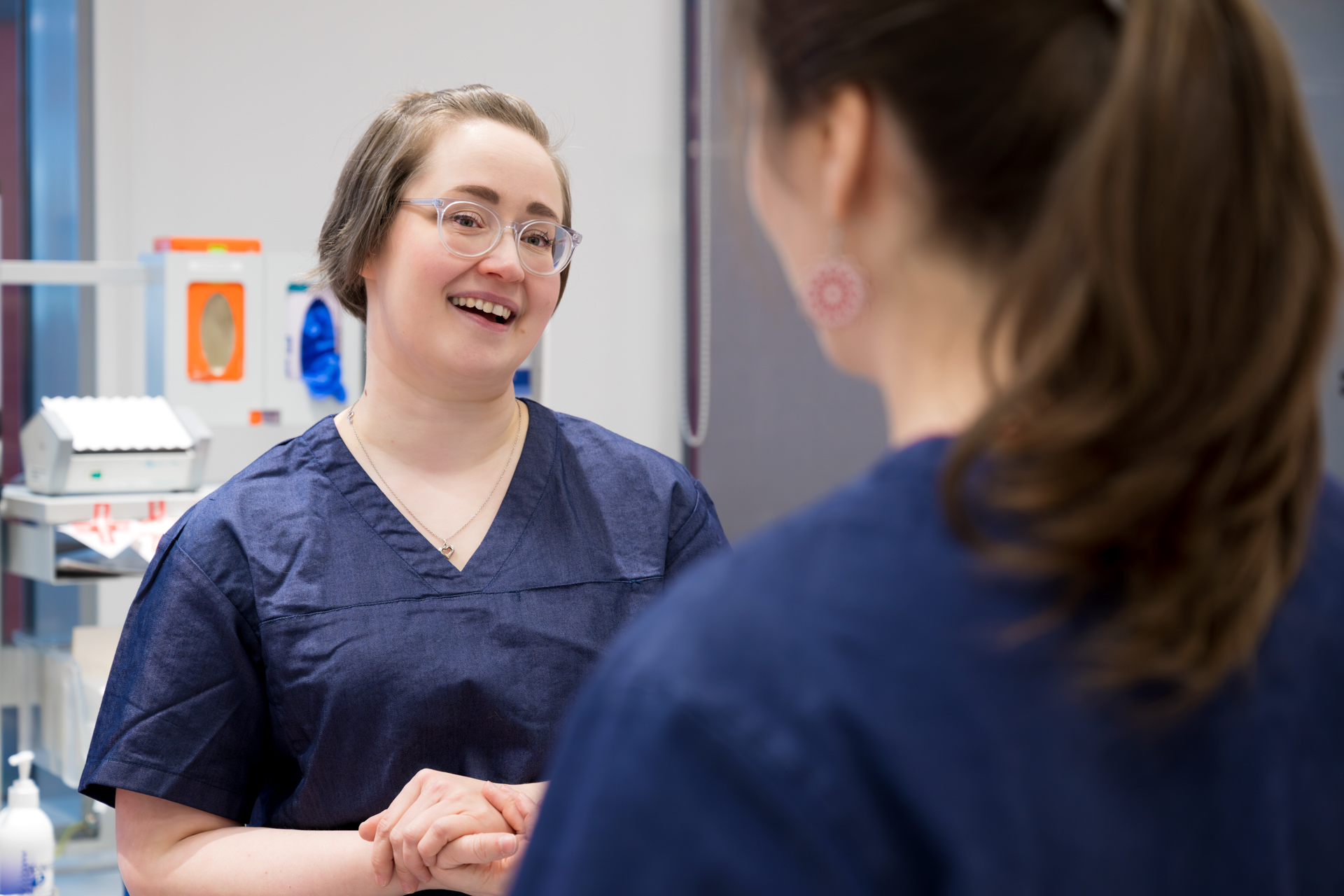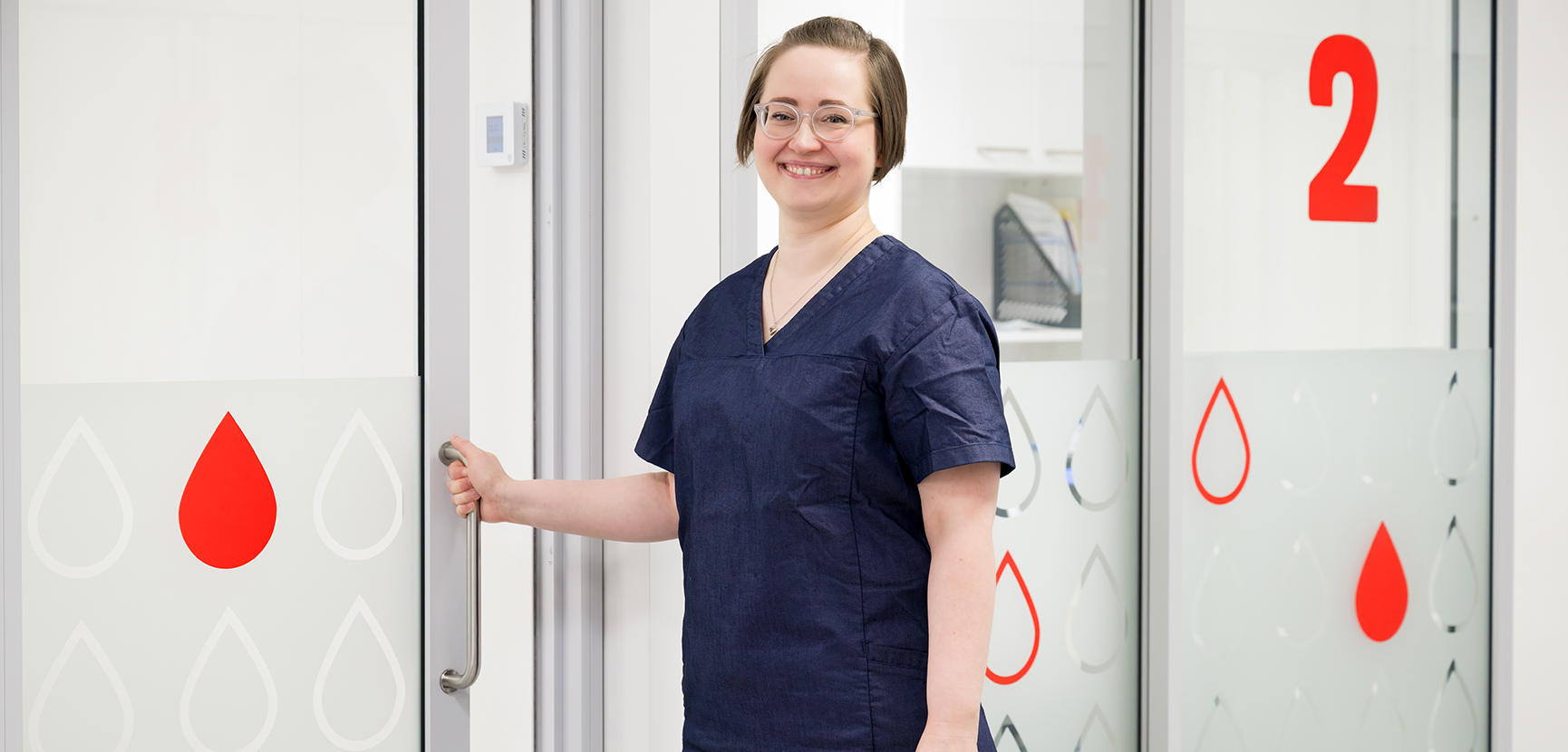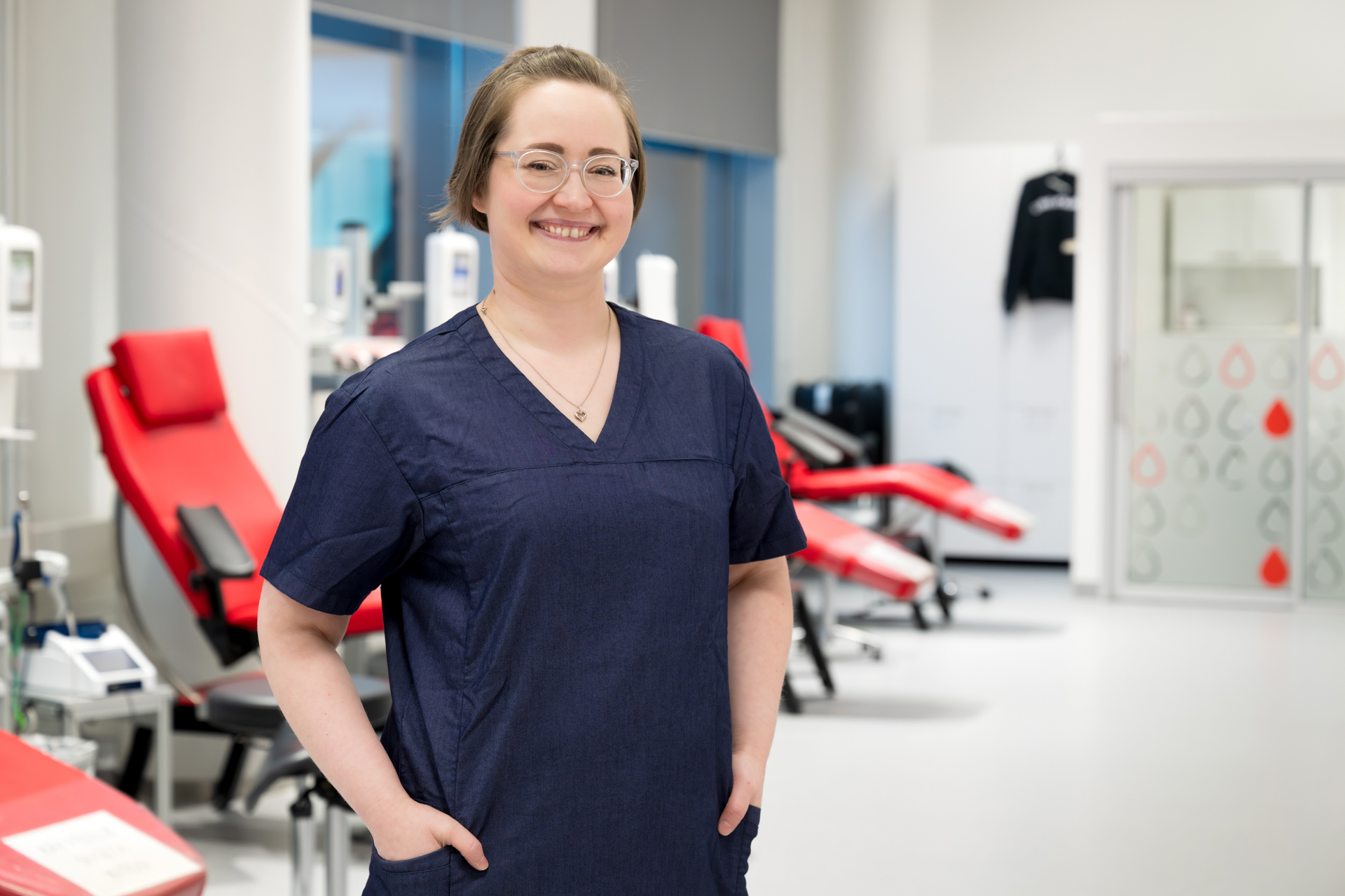 Tykkään vaihtelusta, mutta toisaalta on ihanaa, että työssä on tietty rakenne. Haastattelen verenluovutukseen tulijan ja arvioin, voiko hän luovuttaa verta ja onko hänen verensä potilaille turvallista. Sitten mittaan luovuttajan hemoglobiinin, valmistelen pussisetin ja näyteputket sekä ohjaan luovuttajan luovutuspetille ja lopuksi vielä kahville.